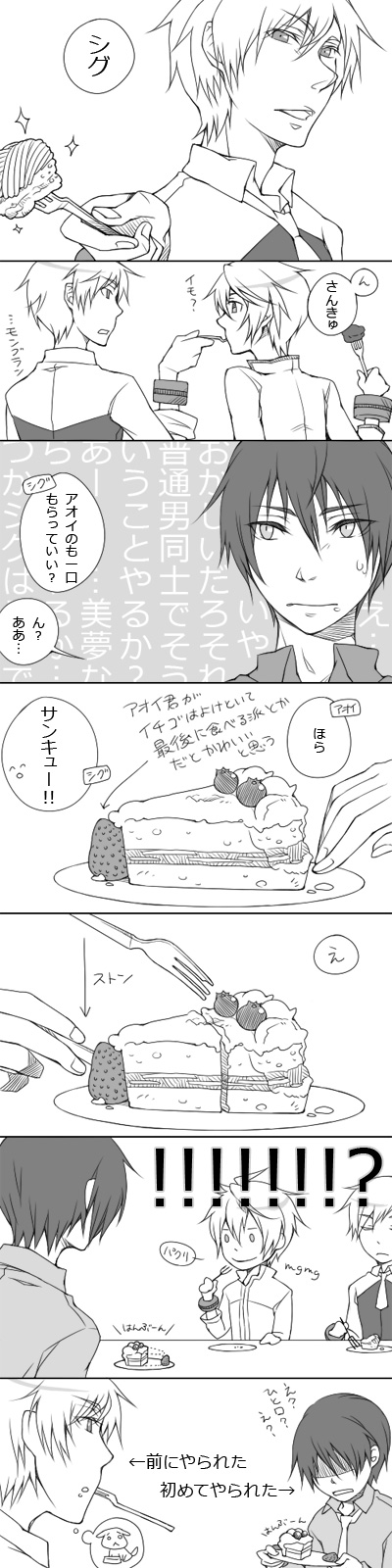 以前クロトたんにケーキをあげる絵を描いたときに、「男にはたぶんこういう事はしないよ」っていったら、